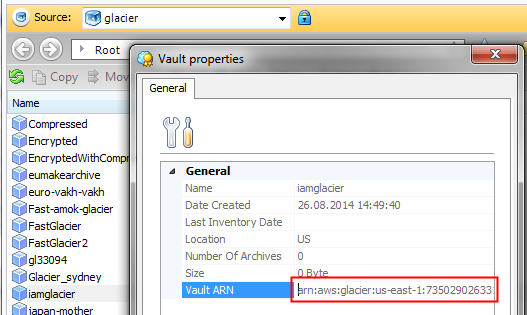 This is minimum required permissions for backup/restore using CloudBerry Backup - it grants read/write access to a certain vault to your IAM user. Note: to get ARN address (arn:aws:glacier:YOURREGION:XXXXXXXXXXXX:vaults/YOURVAULT) of your vault you can right-click on the vault being on left or right pane in CloudBerry Explorer and select Properties, then you will see Vault ARN (copy-paste it):