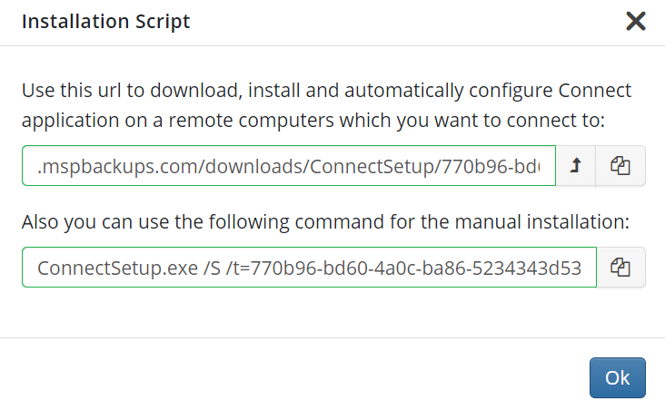 - Copy installation script - this option is used mostly for bulk installation – for instance, with an RMM solution.