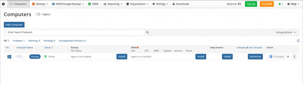 After your customers have installed Connect on their devices, proceed to the Computers tab and refresh the page if needed. You’ll see your customers’ endpoints in the list.