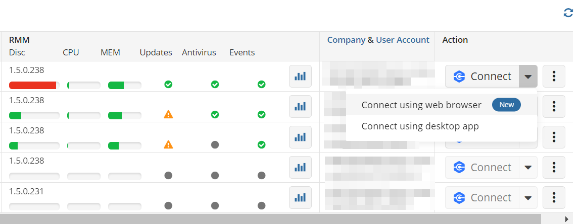 MSP360 RMM includes the MSP360 Managed Connect license at no extra cost, allowing you to remotely access Windows devices directly from the web console.