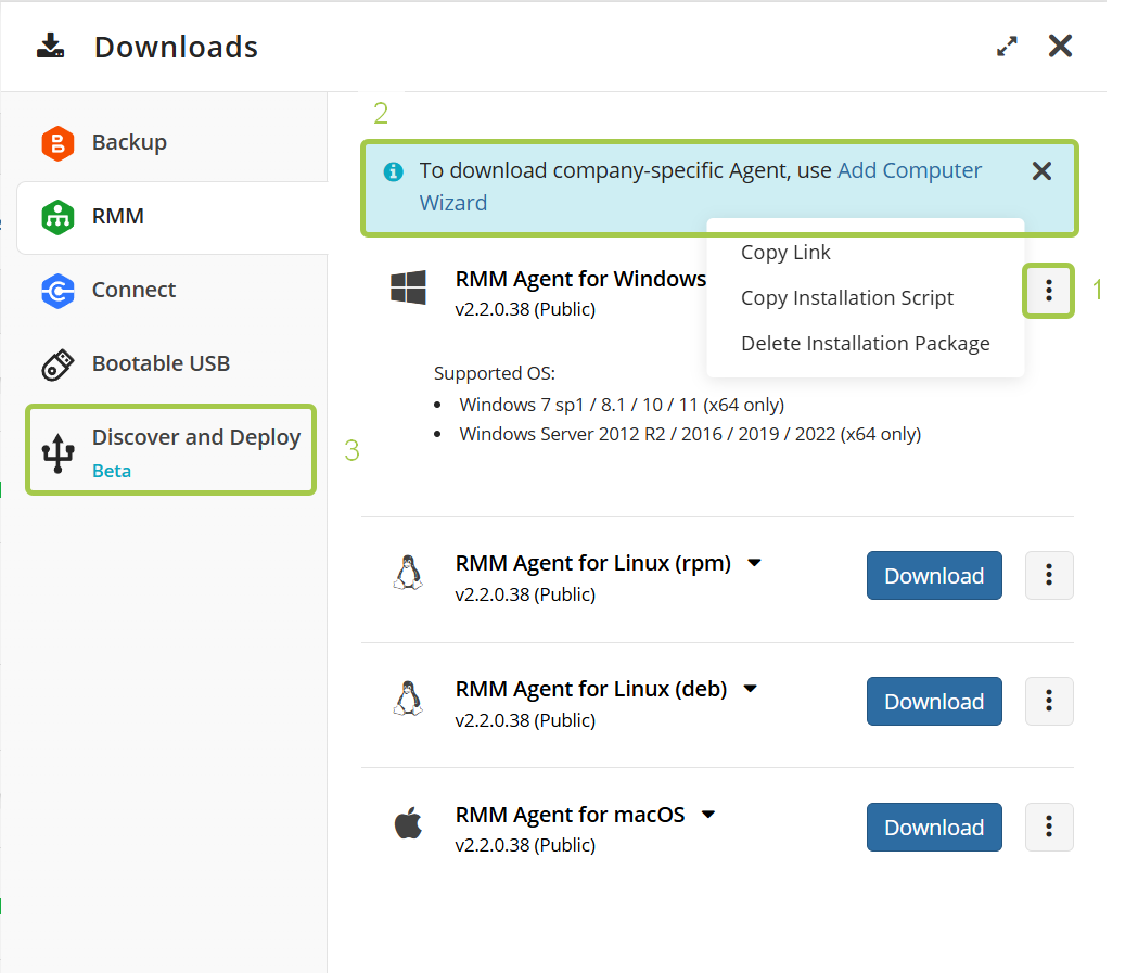 MSP360 RMM includes the MSP360 Managed Connect license at no extra cost, allowing you to remotely access Windows devices directly from the web console.