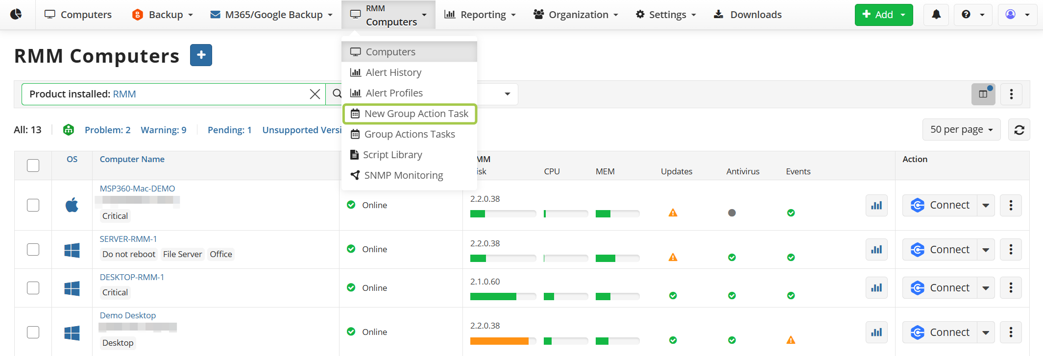 MSP360 RMM includes the MSP360 Managed Connect license at no extra cost, allowing you to remotely access Windows devices directly from the web console.