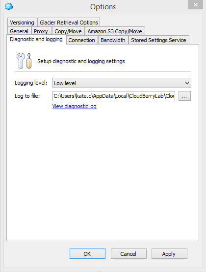 To make it easier for our customers to provide us with exhaustive information about the issue we implemented a diagnostic log, an easy way to turn it on and send it to MSP360 support stuff.