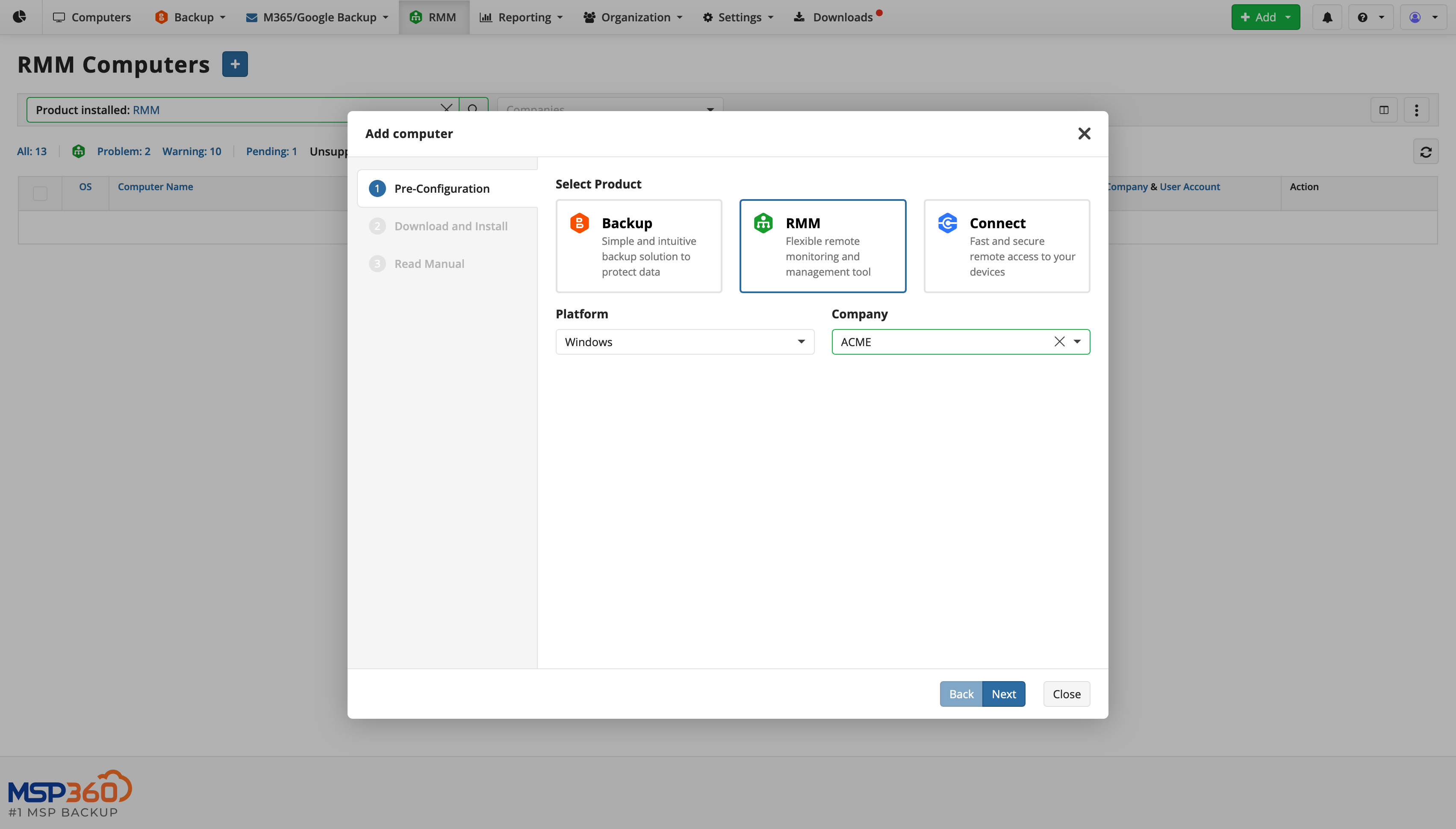 Scenario: Migrate to MSP360 RMM